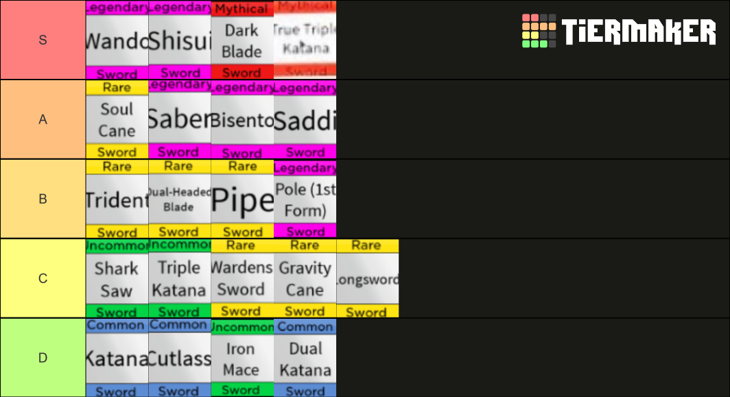 Blox fruits sword tier list. Blox fruits sword tier list.: Blox piece devil fruit tier list : Is a logia rare devil fruit you can buy it for 350k. Create your own blox fruit swords ranking save/download tier list.